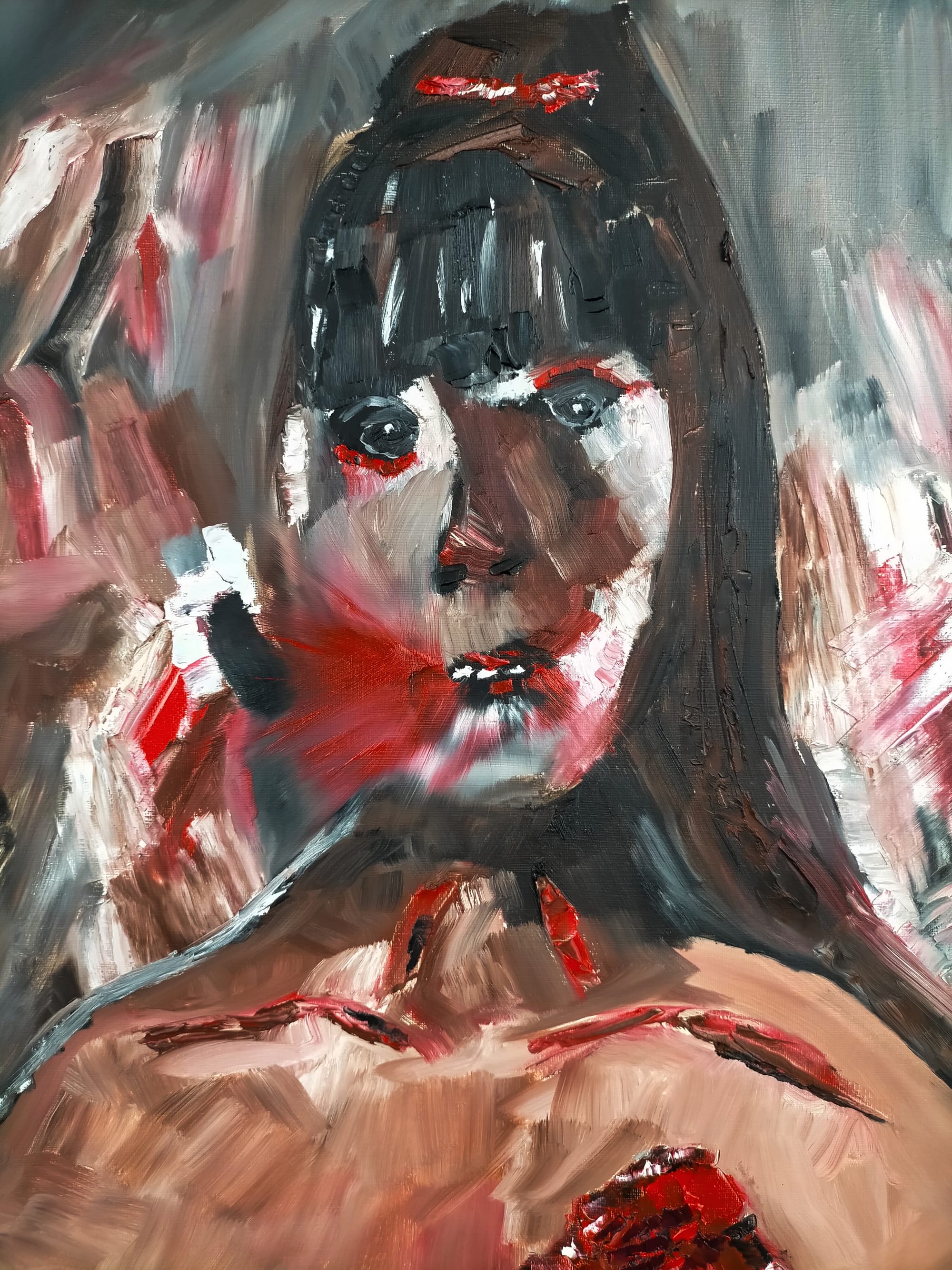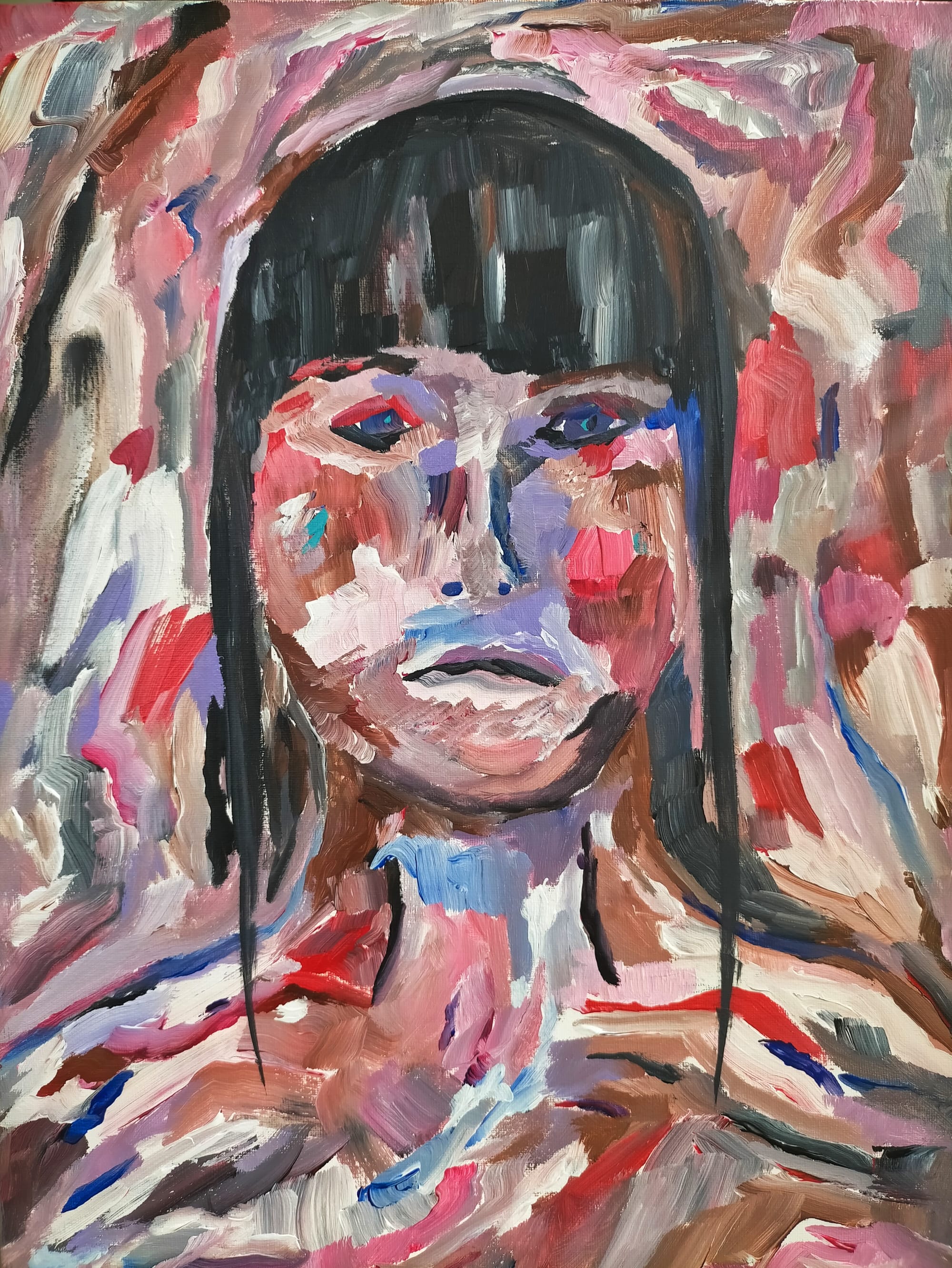 This honesty runs through all her pieces, from the raw intensity of Self Portrait 8 – Heartbreak and Self Portrait 10 – Wearied by Terror to the quiet, meditative pain of I Don’t Want to Die. Each one is a marker in time, a snapshot of emotion rendered in colour and shapes. “Each self-portrait I make best represents me at that time,” Alice explains. “Self Portrait 7 – All for You is probably the best painting I’ve ever made. It was about celebrating me, something I rarely do. It’s about love of self.”